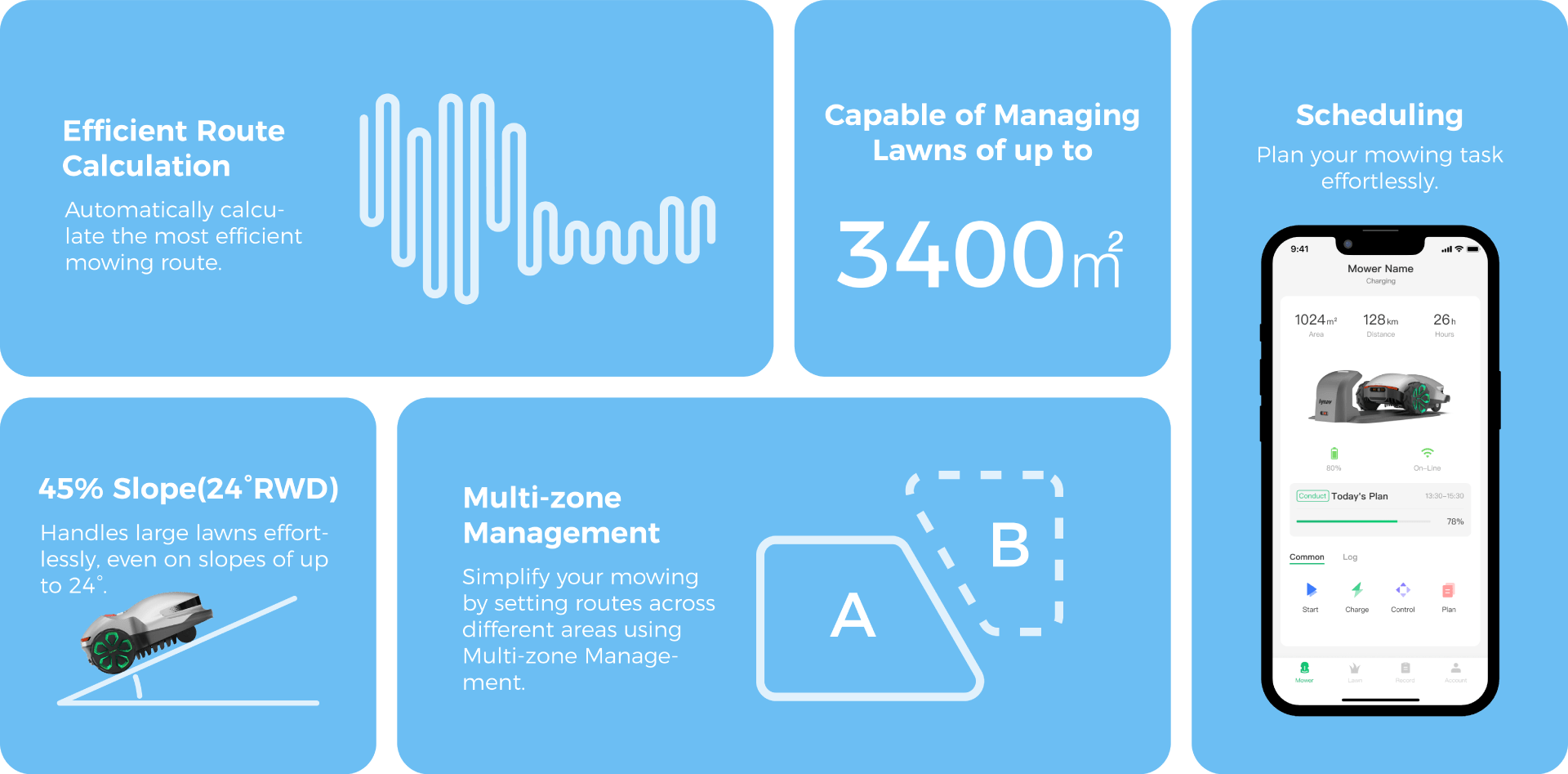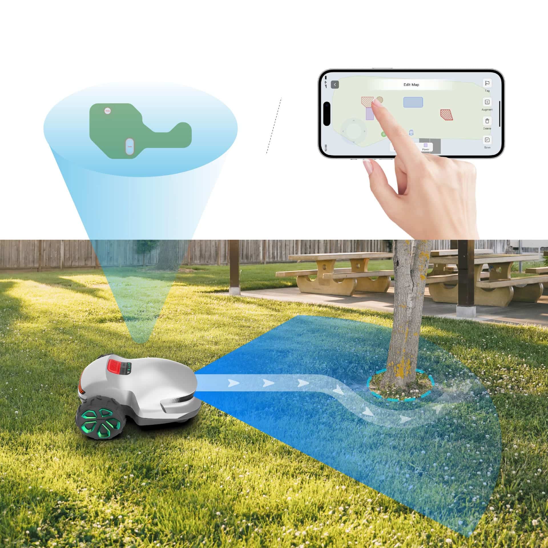 Create virtual boundaries and restricted zones remotely using the Wayrobo App.
